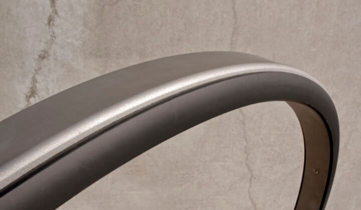A fluid, circular design that incorporates our exclusive No Scratch bumper that protects both bikes and the rack itself from damage.